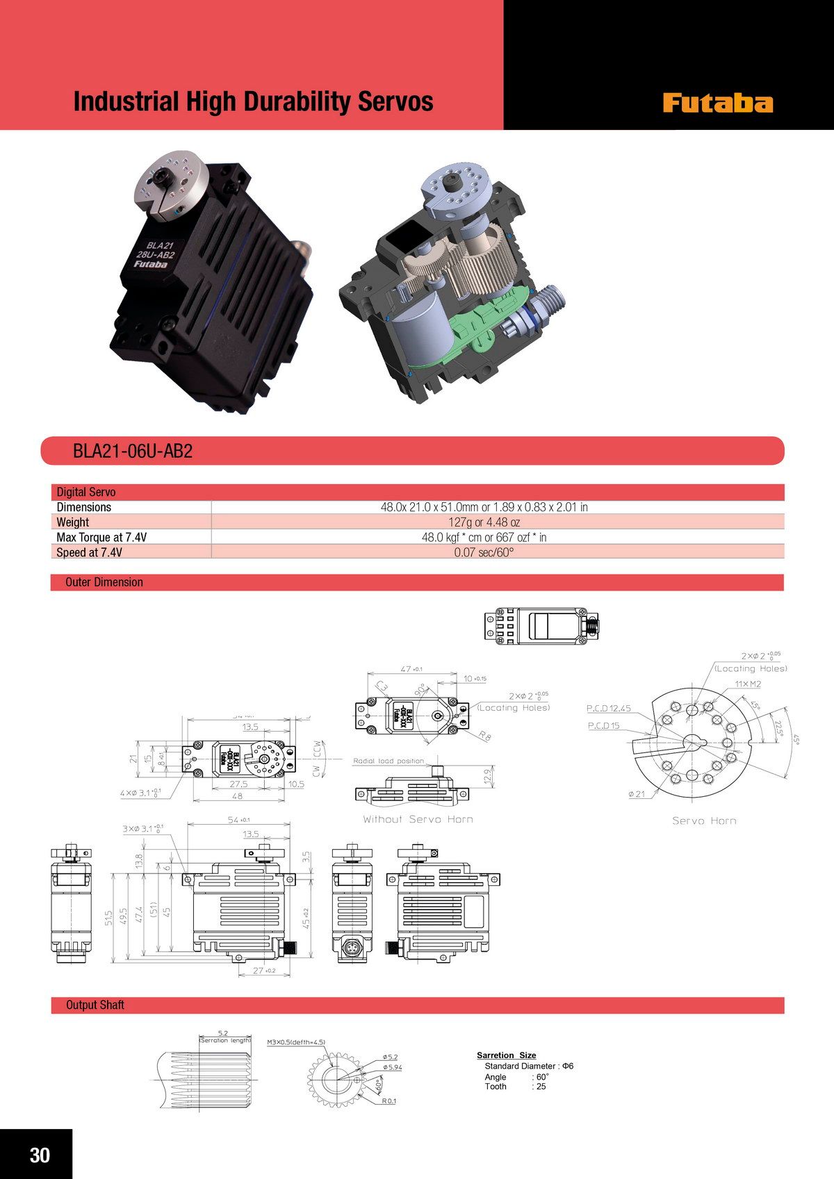 – Max Torque at 7.4V – 48.0 kgf * cm or 667 ozf * in